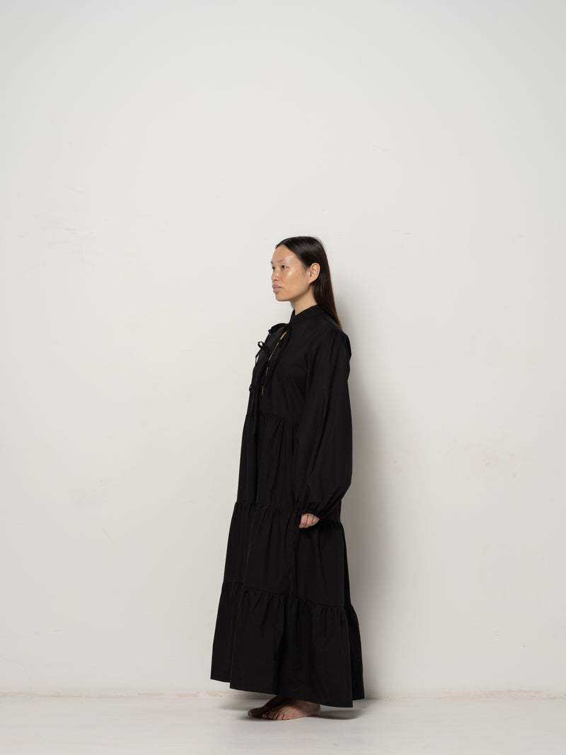 Freja Longsleeve Dress - Black Cotton Poplin Down Proof