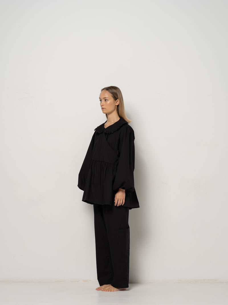 Tilda Collar Blouse - Black Cotton Poplin Down Proof