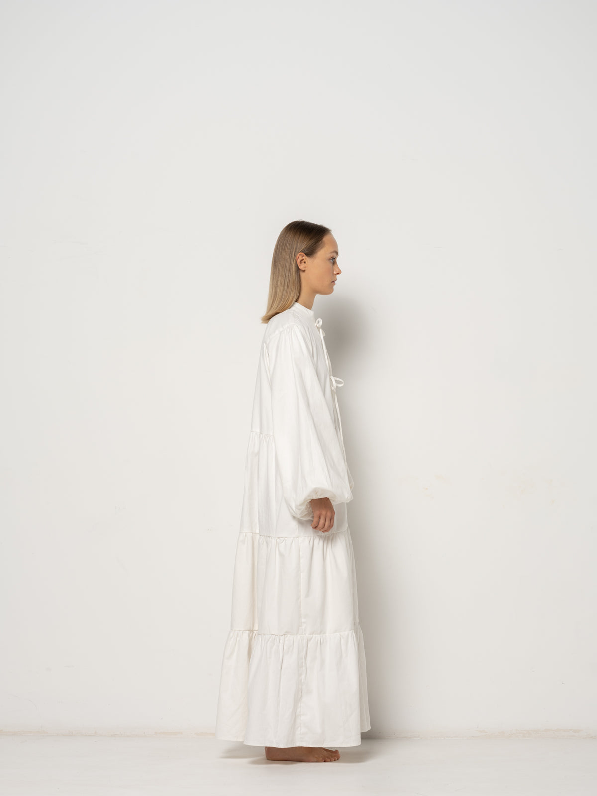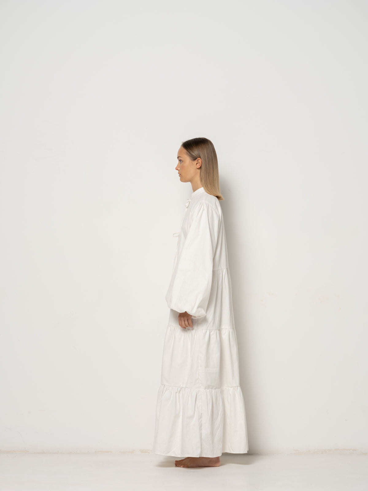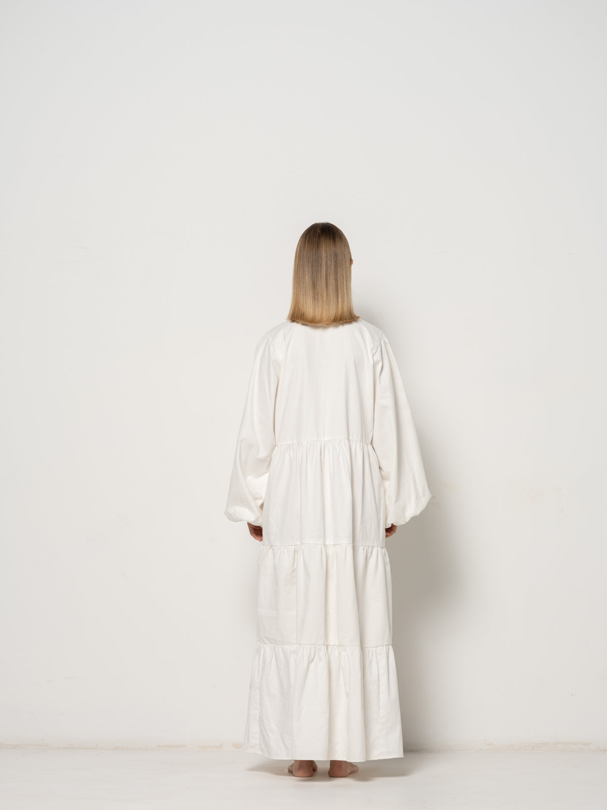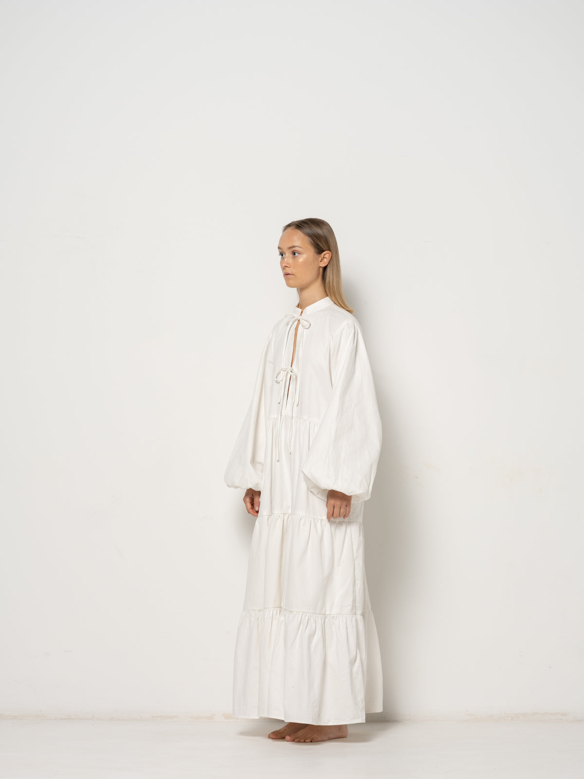 The Freja Longsleeve Dress is a classic addition to any wardrobe. Made from natural Twill Cotton, this dress features ruffled details and balloon sleeves for a comfortable look. The loose and breathable design makes it perfect for any occasion.