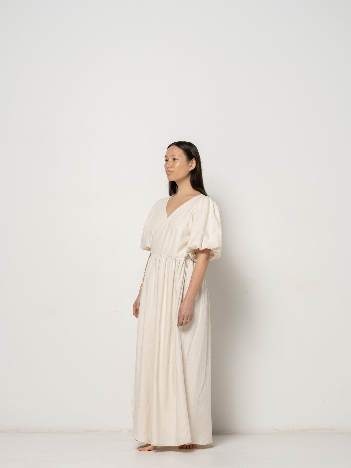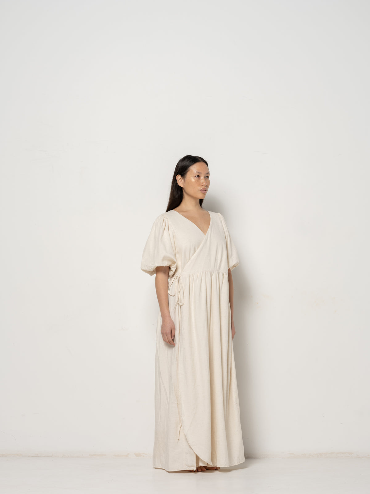 Ida Wrap Puffsleeve Dress - Cotton Linen Blend