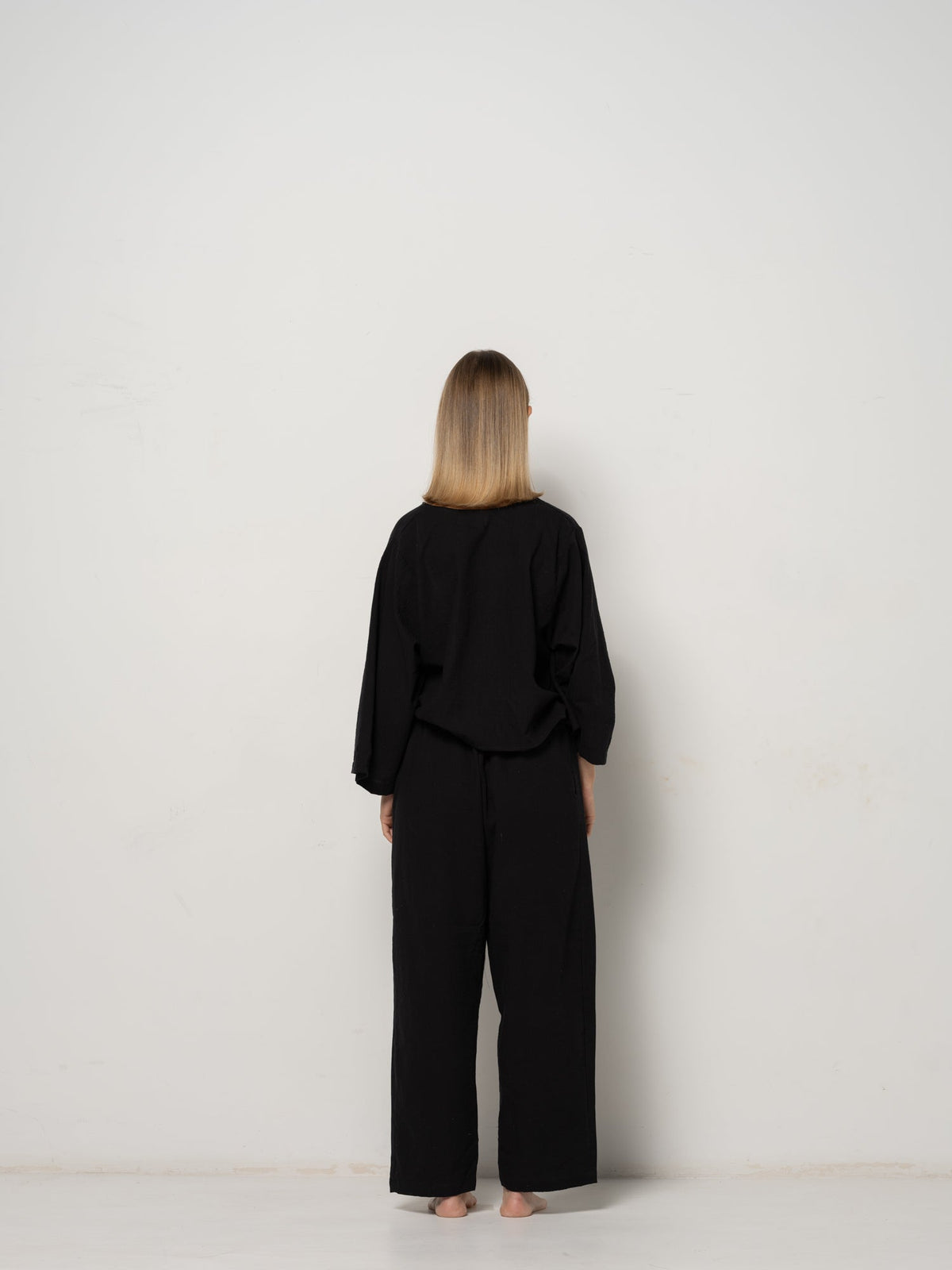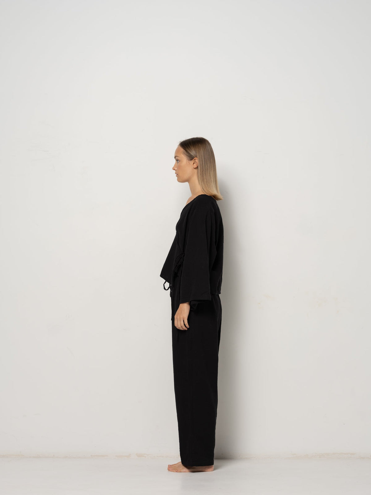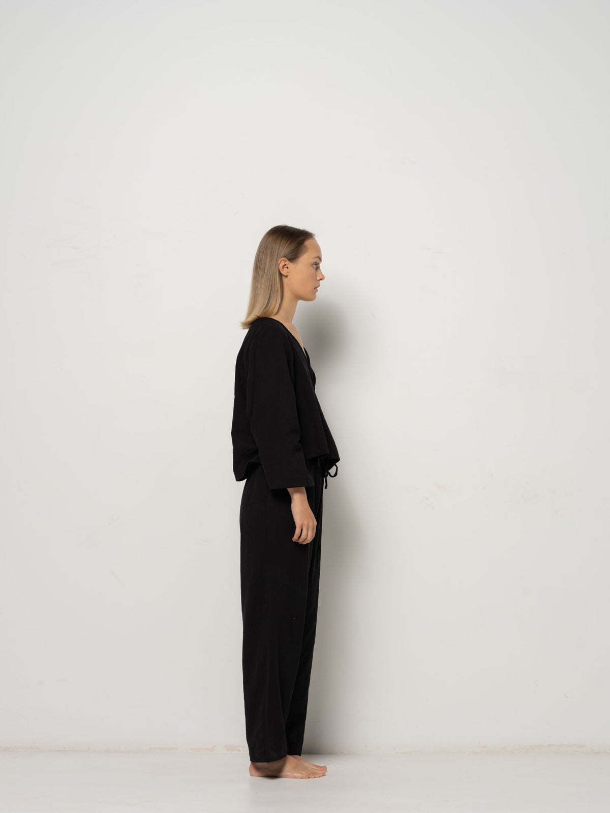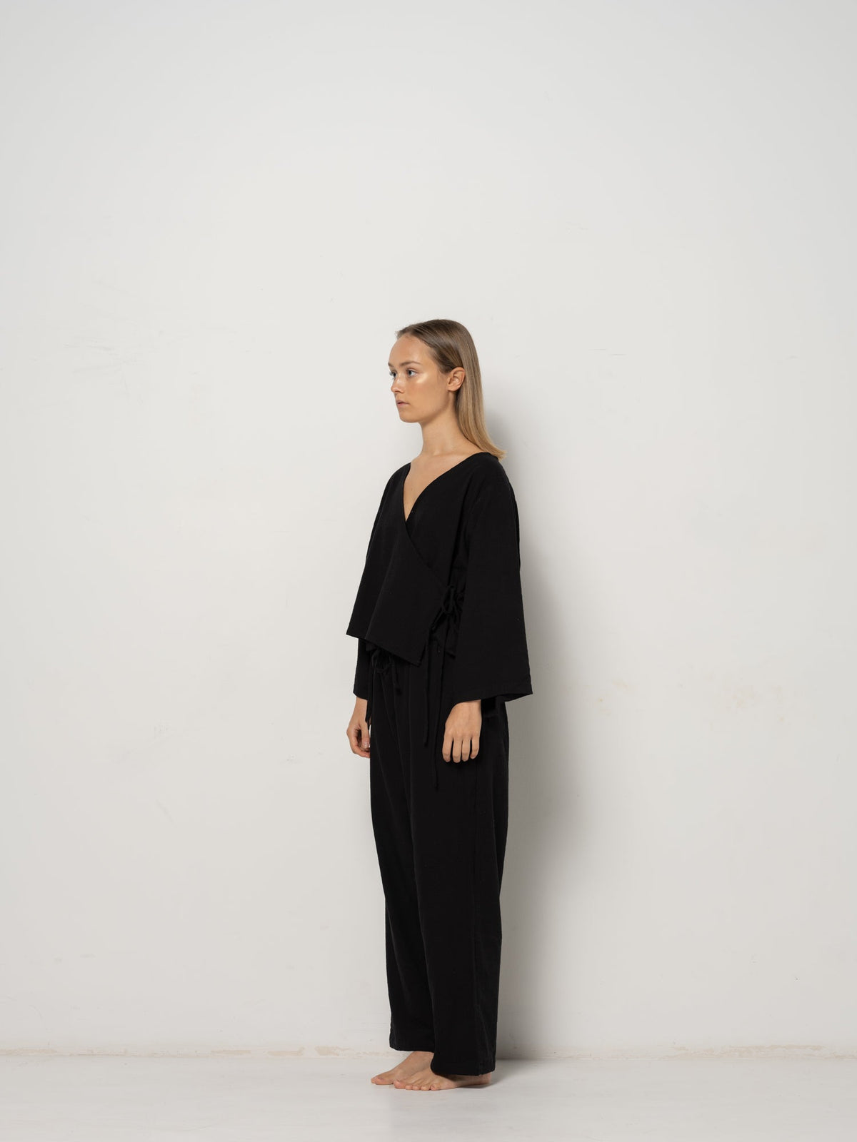 The Selma Pants, made from pure cotton, are a smooth blend of elegance and comfort. The elastic waistband provides a customized fit. Effortlessly paired with our Selene Wrap Kimono for a complete look.
