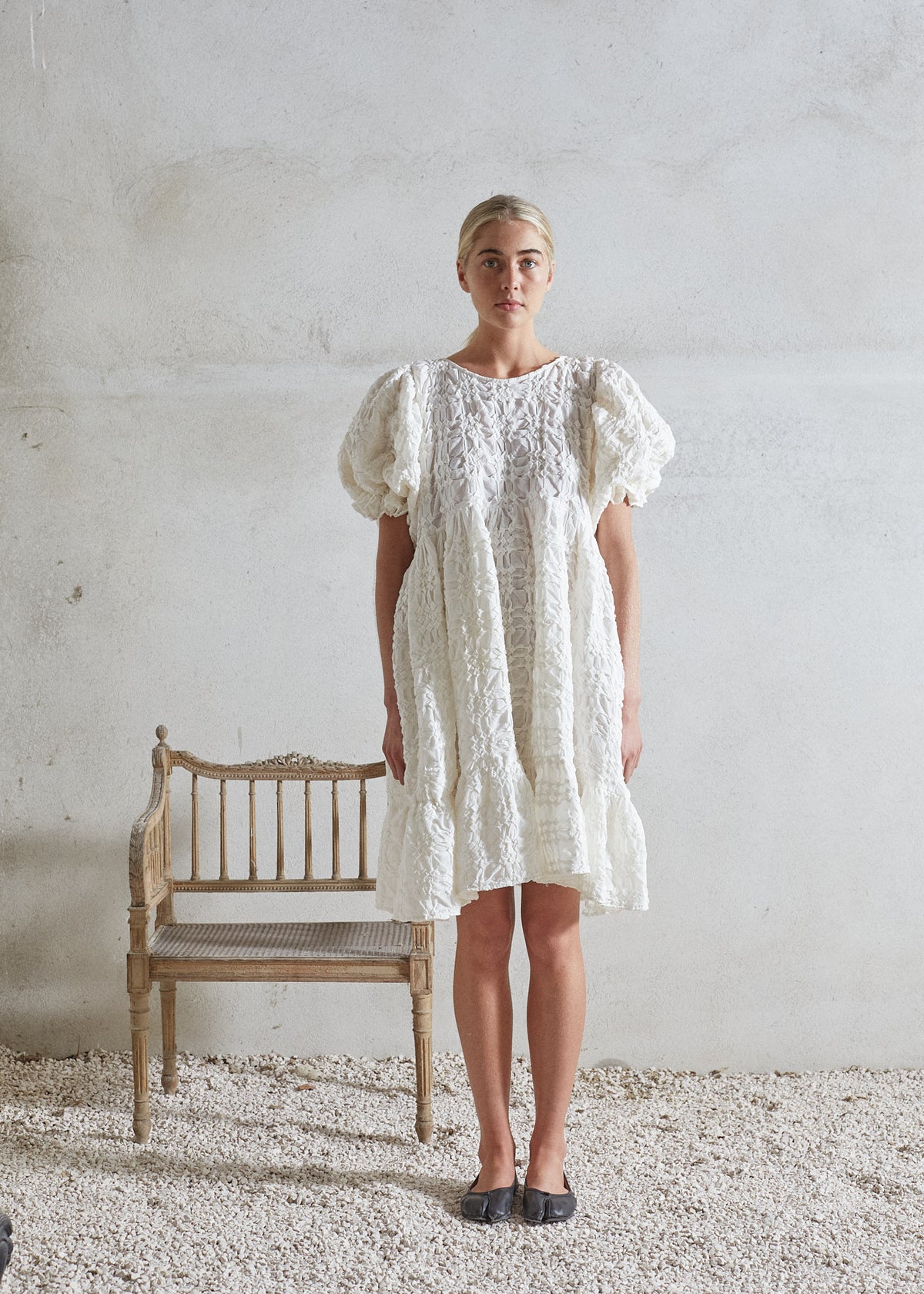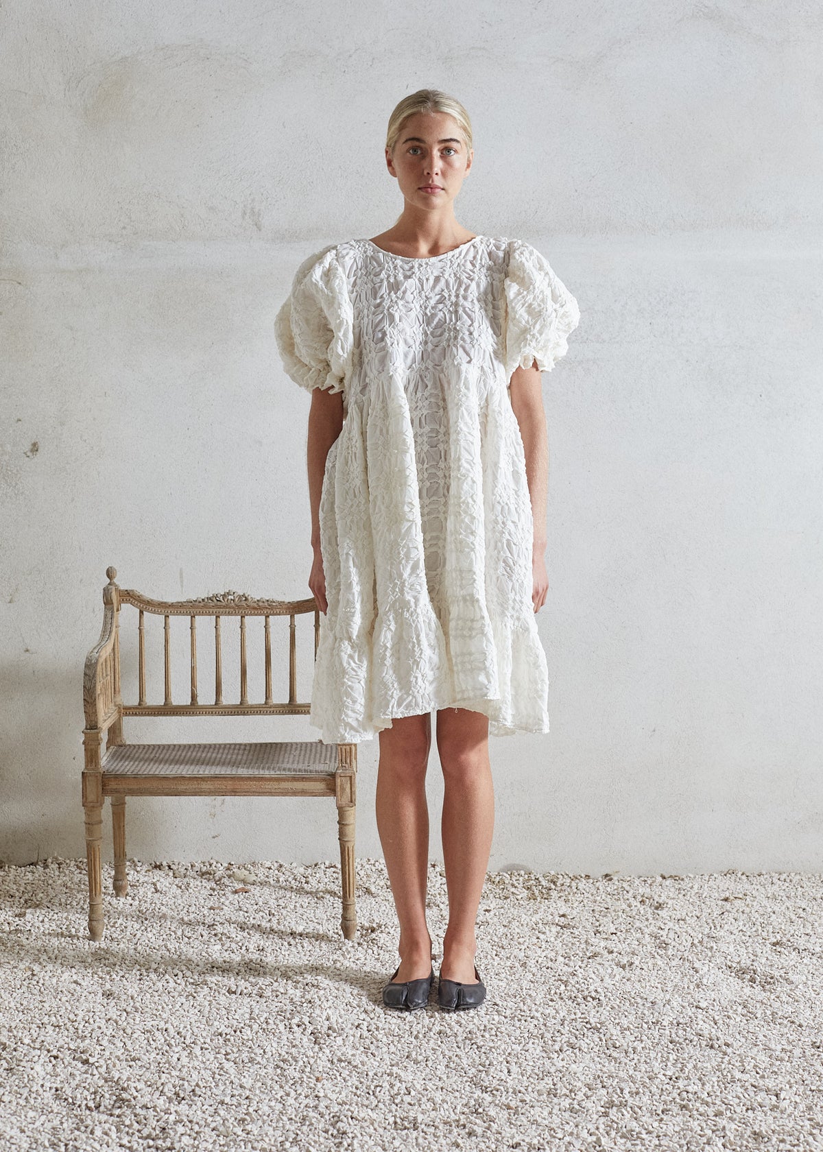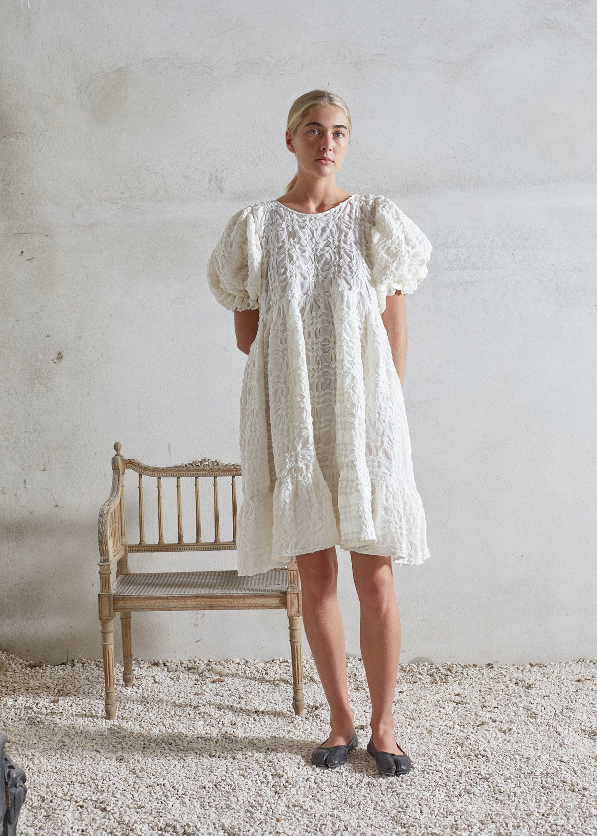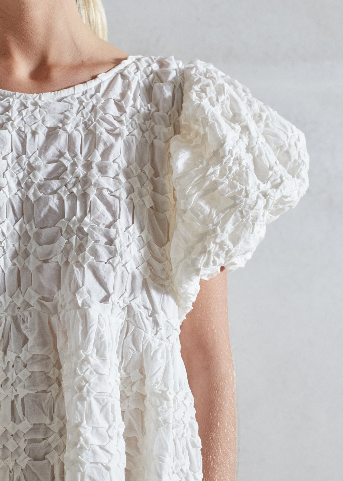 Its flowy design in combination with this special hand smock fabric, gives it a soft and feminine appearance offering freedom to move effortlessly.