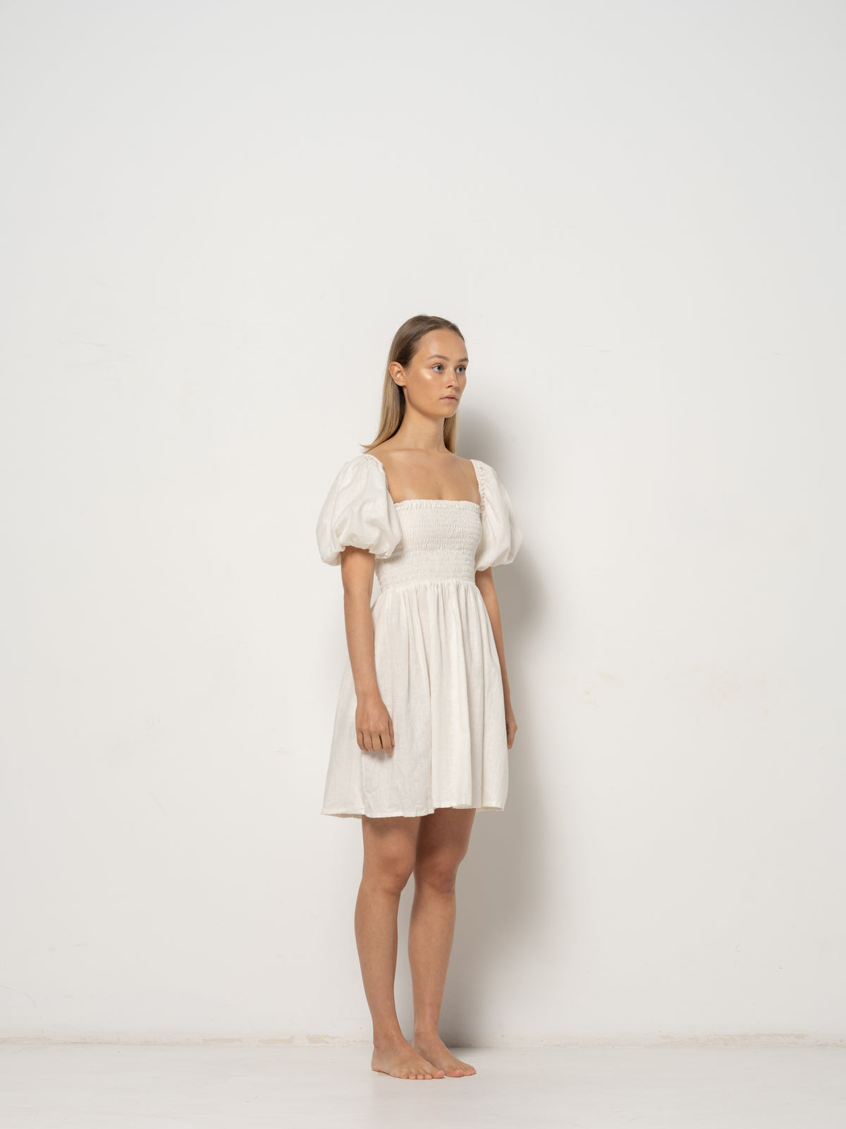 Maja Puff Sleeve Dress is perfect for summer with its elasticized chest and fluffy skirt, giving you a comfortable and flattering fit. The dreamy puff sleeves add a romantic touch. Made from Natiural Dye Hemp & Organic Cotton.