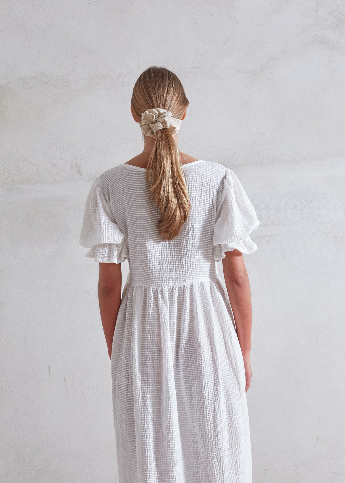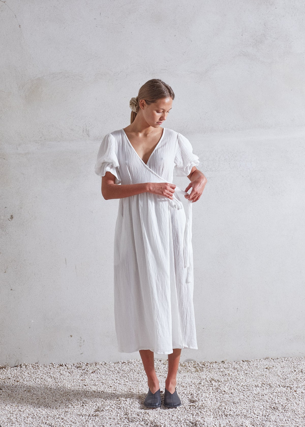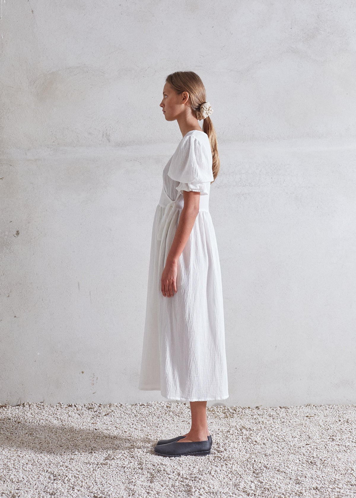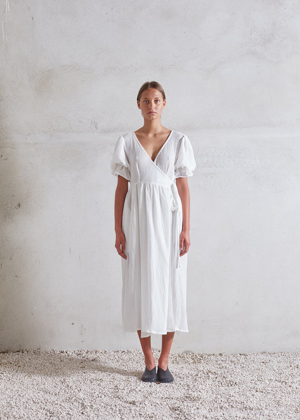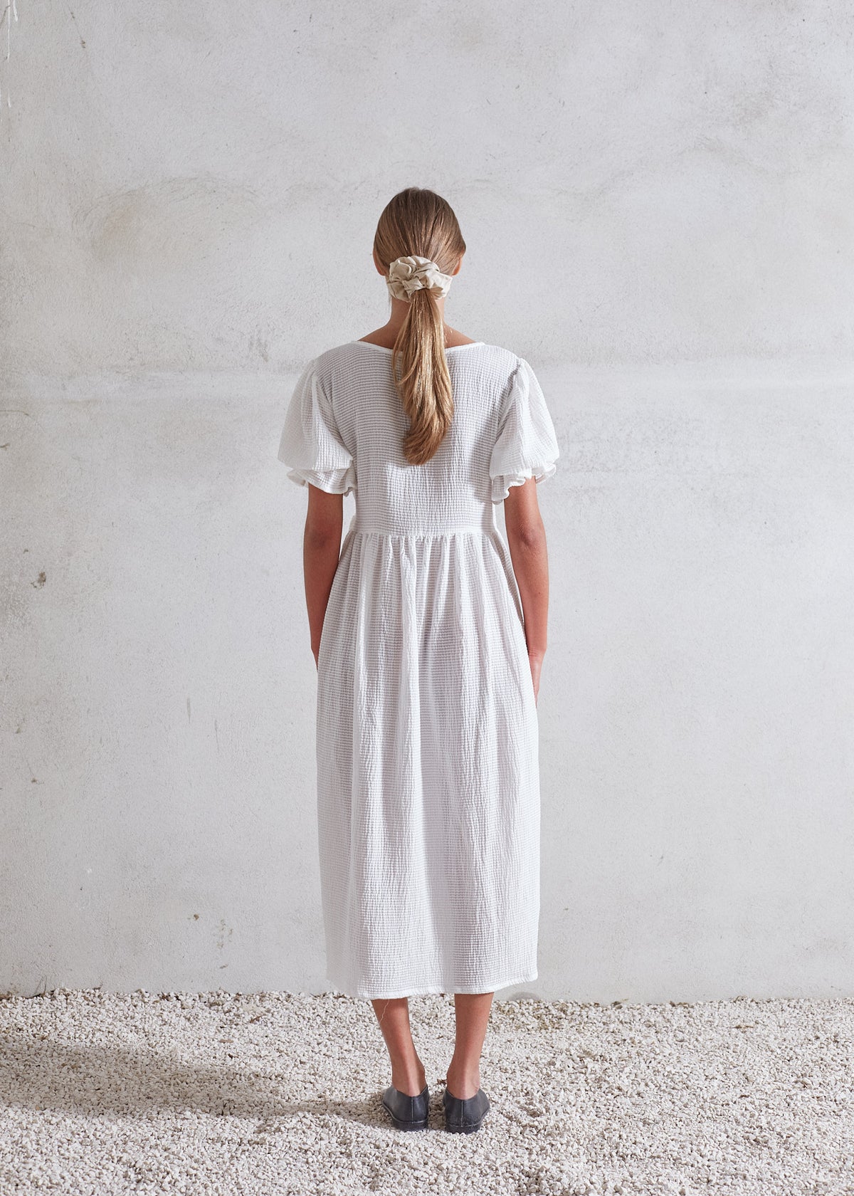 The Sonata Dress is crafted from a soft wave cotton, providing a notable feel. Perfect for any occasion, this dress offers comfort and effortless elegance all in one. You'll love the softness of this fabric.
